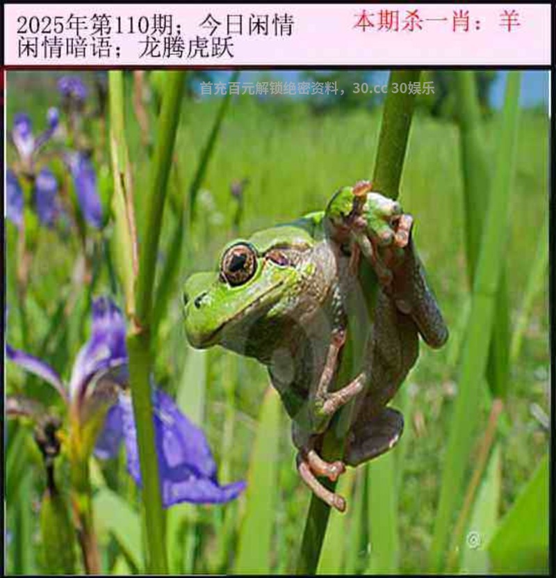 110期:闲情暗语:开發00 龙腾虎跃 解释:图中一只绿色的青蛙解绿色的生肖解牛龙羊狗 七肖:猴狗龙兔鼠猪蛇 五肖:猴狗龙兔鼠 四肖:猴狗龙兔 三肖:猴狗龙 二肖:猴狗 一肖:猴